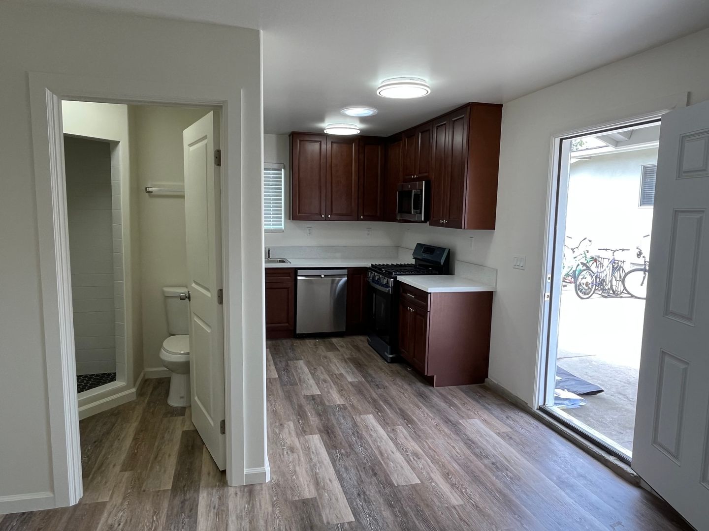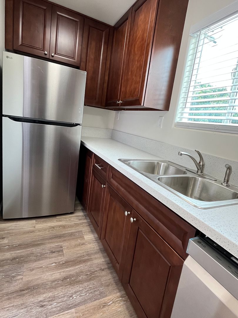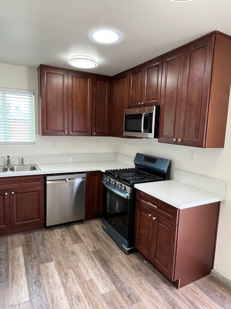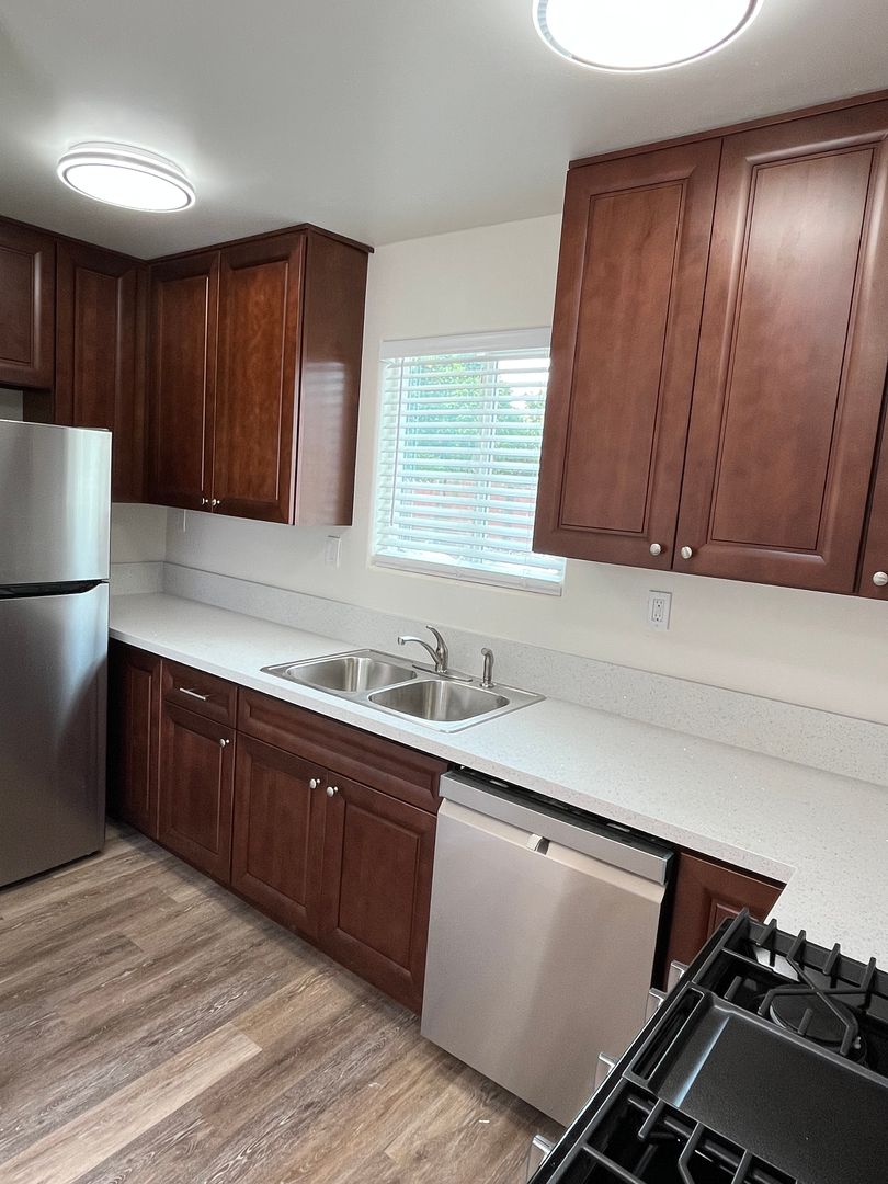 Newer construction on west end of Isla Vista. Plank flooring, white vinyl dual glazed windows (for better insulation from noise and drafts), stainless steel appliances (including dishwasher!), upgraded cabinets and counters, showers, fixtures, plumbing etc.