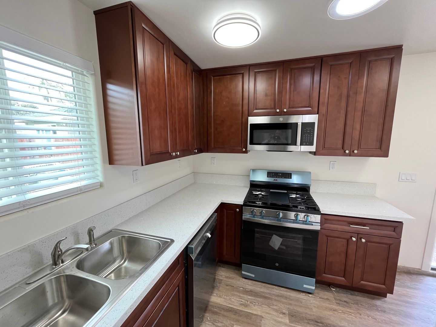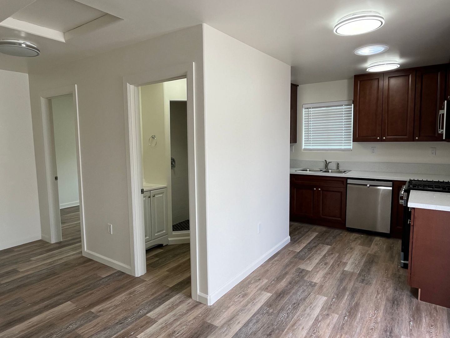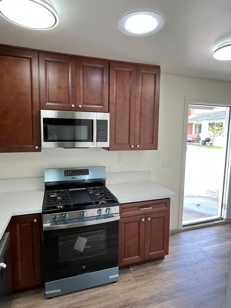 Newer construction on west end of Isla Vista. Plank flooring, white vinyl dual glazed windows (for better insulation from noise and drafts), stainless steel appliances (including dishwasher!), upgraded cabinets and counters, showers, fixtures, plumbing etc.