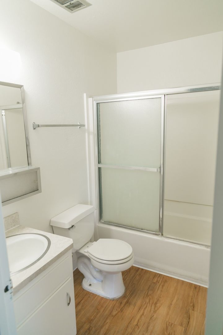 GIANT bedrooms, a bathroom for every bedroom (both located off of the hallway so people don't need to go through your bedrooms to get there). Large closets and good storage space. On site laundry room. Off street, one (1) assigned parking space per unit at a $100 monthly fee. We pay for water, trash and common area landscaping.