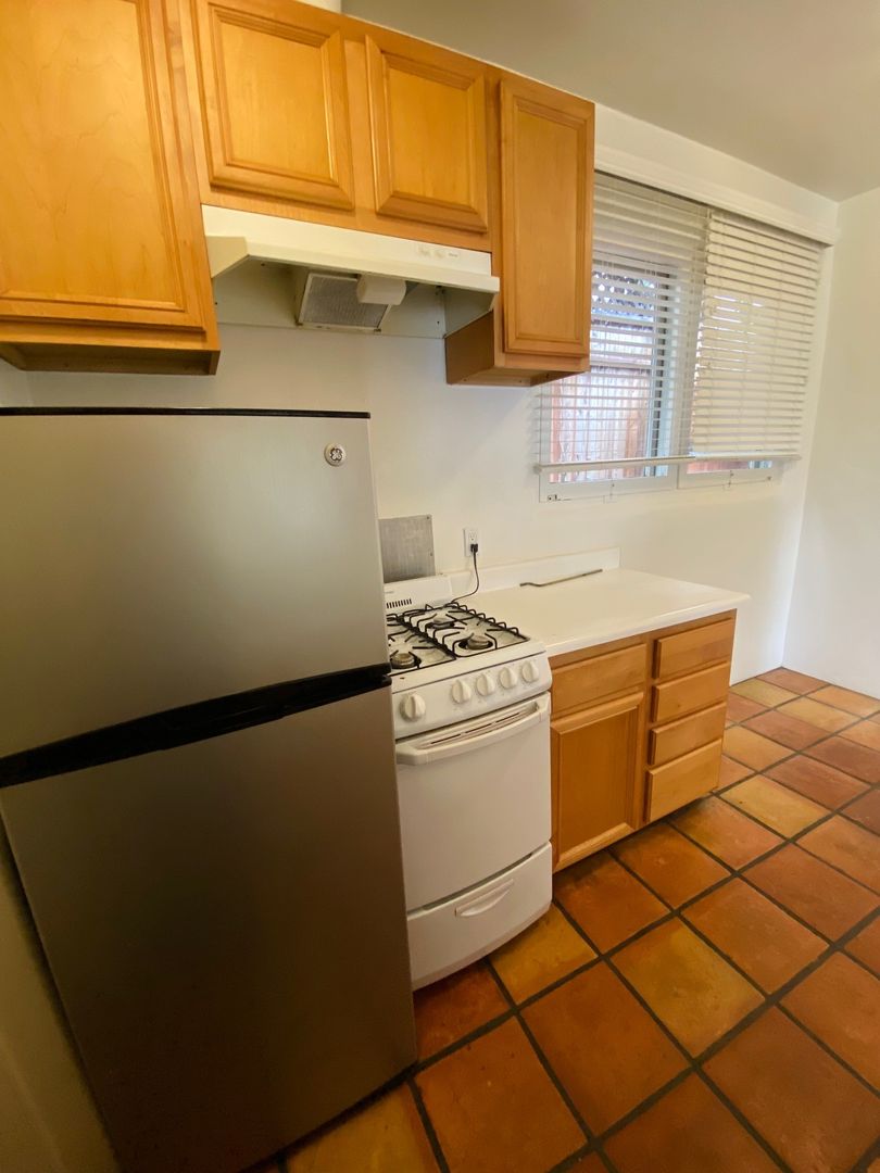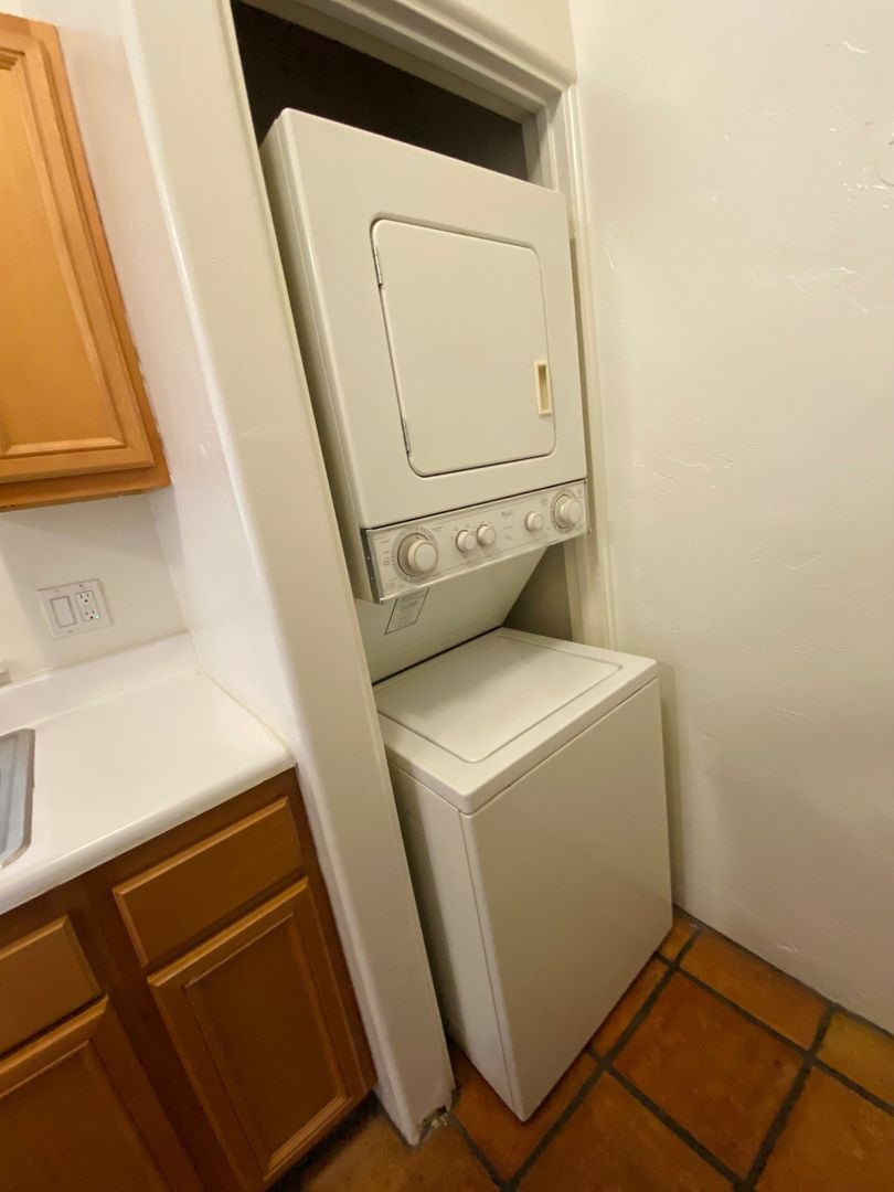 One bedroom detached Mediterranean cottage w/Saltillo tile floors, in-house stackable washer & dryer, walk-in closet, ceiling fan, private yard, plus carport parking for 2 vehicles.