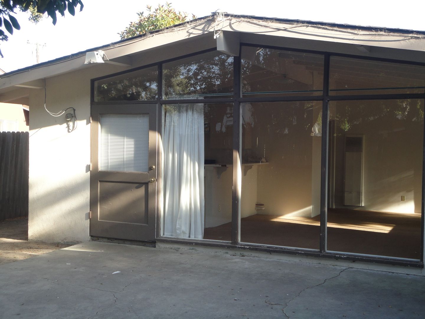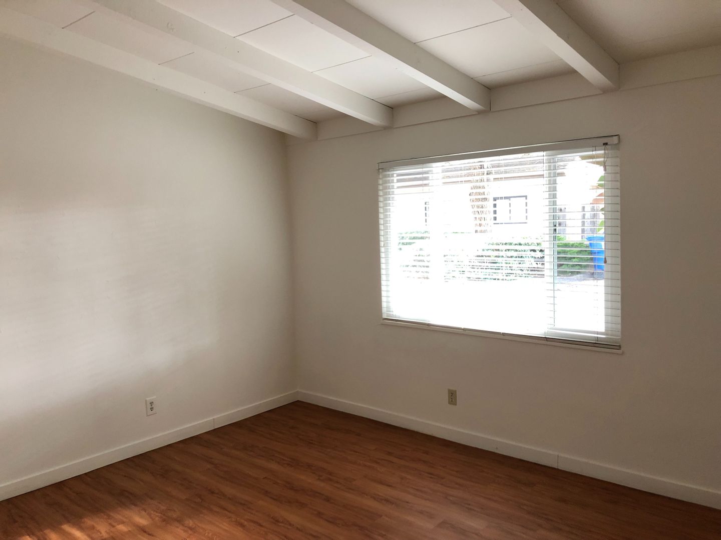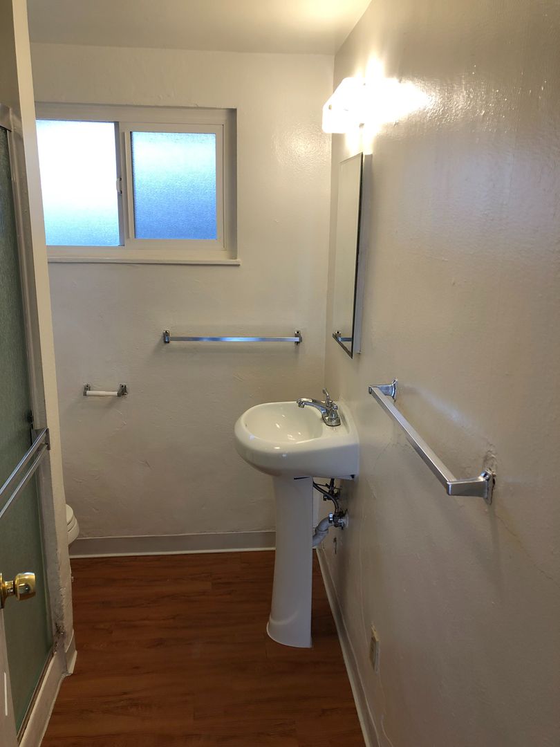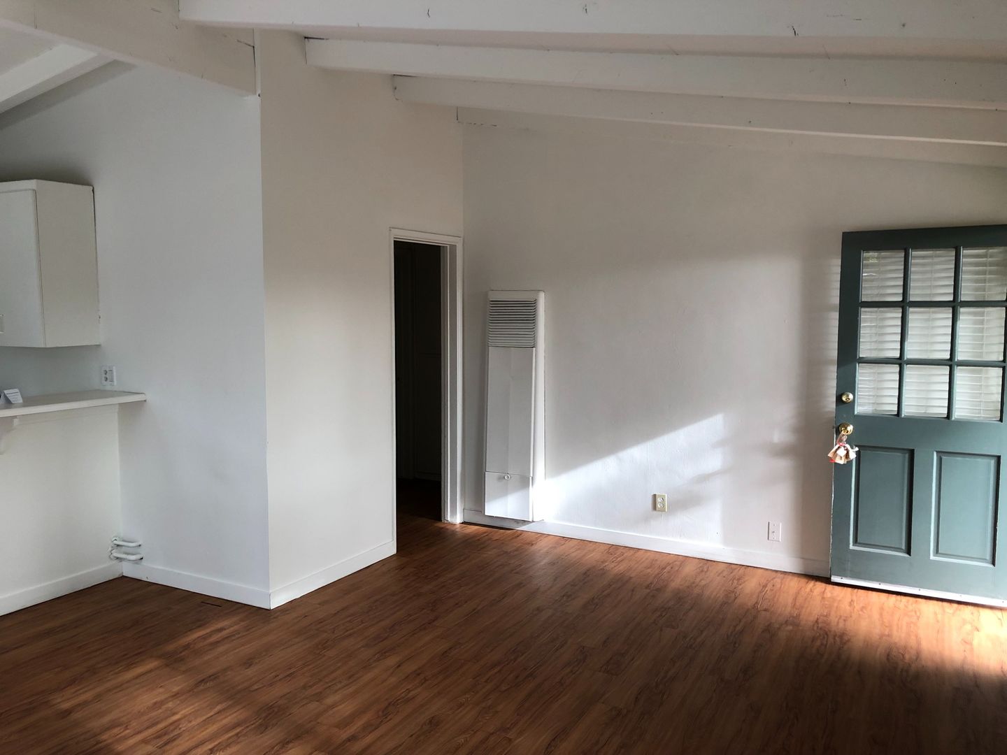 Unit is located at the back of a long driveway which reduces the random foot traffic. Vaulted & open-beamed ceilings, open floor plan with nice integration from the kitchen and living room. Large private, enclosed patio/yard, one-carport space included in your monthly rent plus additional off-street parking for 1 vehicle only @ $50 per month. We pay for water, trash and landscaping.