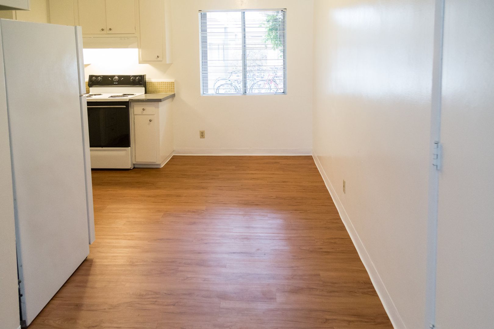 The bus stop is right out in front. Units boast plenty of storage, windows, and open floor plans. Building has giant sun-deck, big courtyard, and on-site laundry facilities. One (1) off-street assigned parking space per unit at a fee of $50.00 per month.
