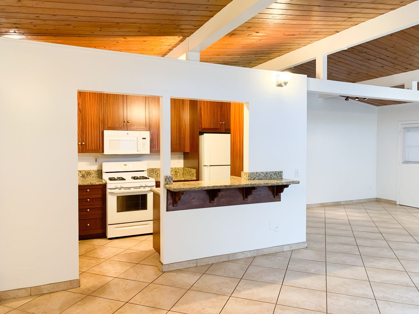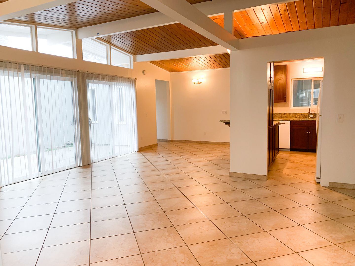 INCREDIBLE house with a yard + private patio. Vaulted & beamed ceilings, windows & sliders galore giving great natural light.
