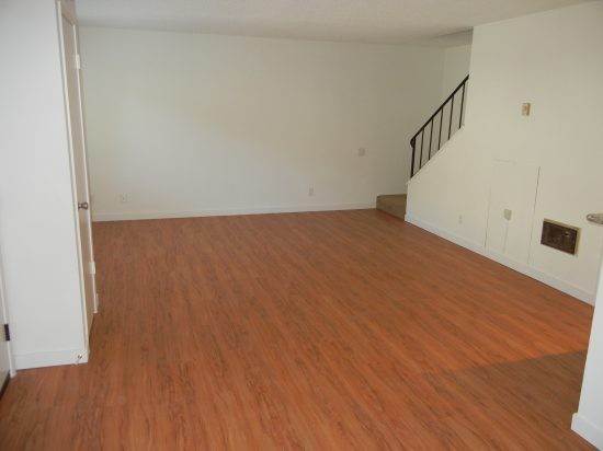 This two-story townhouse offers a private patio and stylish finishes throughout. Enjoy wood grain flooring downstairs, an updated kitchen with granite countertops, stainless steel appliances, and sleek faux wood blinds. Carpeted bedrooms are located upstairs for added comfort.