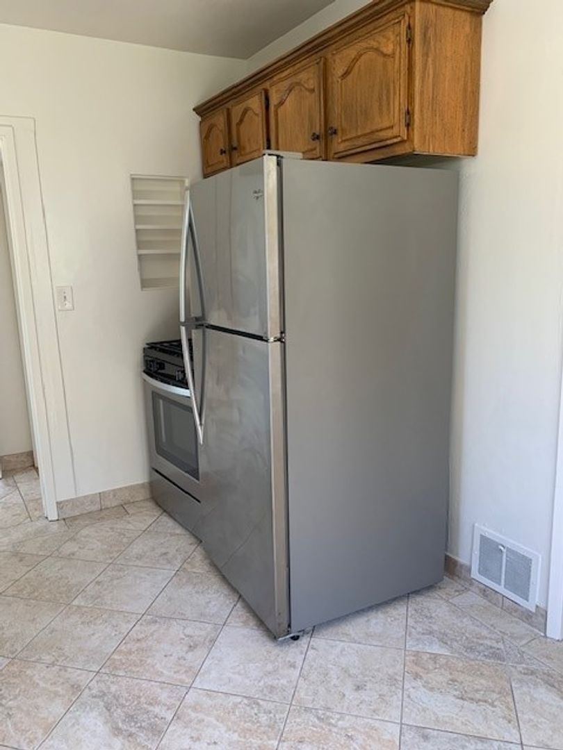 The spacious kitchen includes a separate laundry room with washer/dryer hookups for added convenience. Two full bathrooms—one off the kitchen and one located between the bedrooms—provide comfortable everyday living.