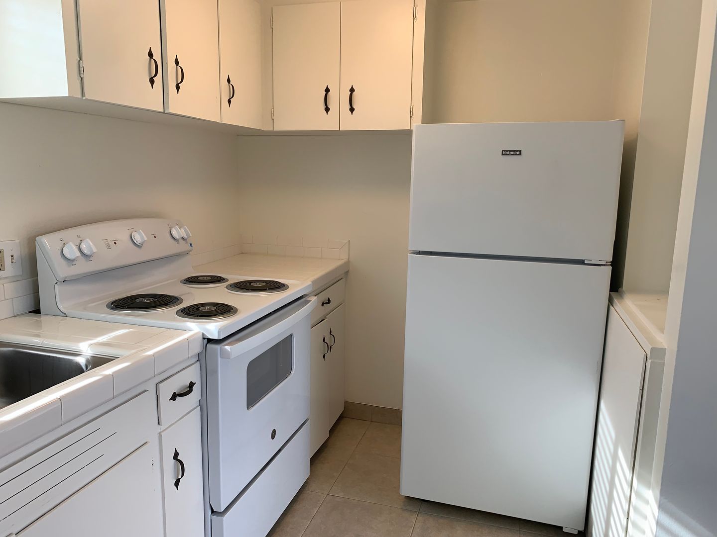 This cozy, all-electric upstairs unit is filled with natural light and features tile flooring in the living area with comfortable carpeting in the bedroom. The sweet kitchen includes a dining nook—perfect for casual meals. The bedroom offers a remote-controlled ceiling fan for warm, sunny days, and the bathroom features a stand-in shower. All windows have been upgraded to new dual-glazed white vinyl windows, providing improved insulation from both weather and noise.